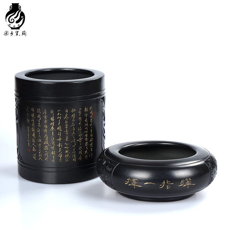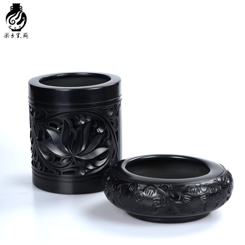 国家非遗德州梁子黑陶两件套