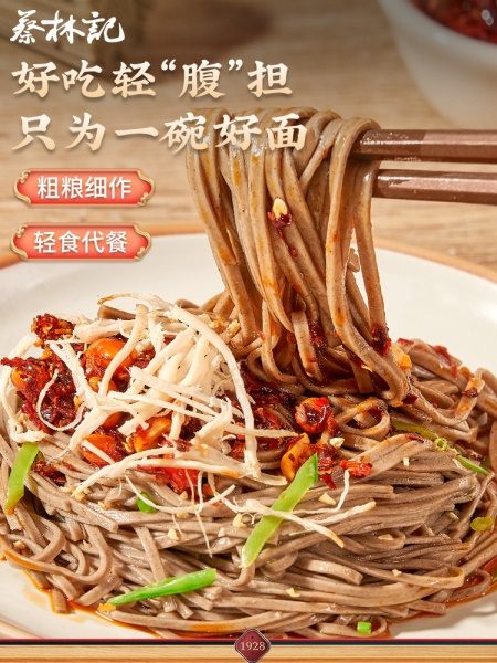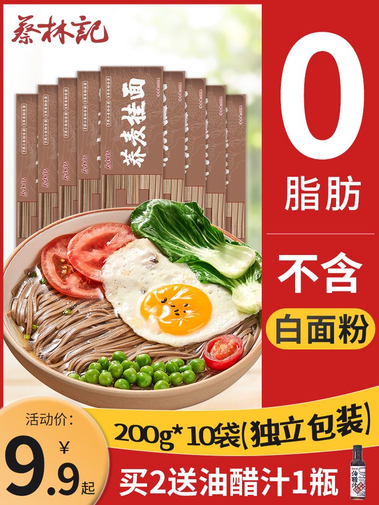 蔡林记0脂肪荞麦面条粗粮挂面黑全麦乔麦代餐主食饱腹低脂蔬菜面