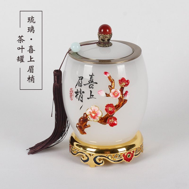 湖北武汉特色工艺礼品琉璃茶叶罐喜上眉梢商务定制出国礼物纪念品