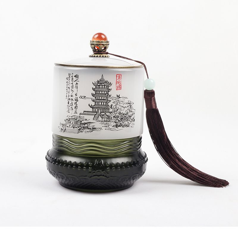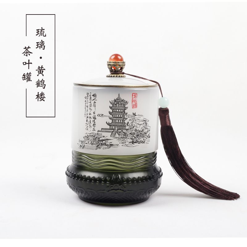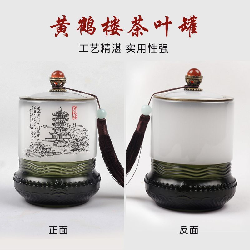 创意中国风黄鹤楼琉璃茶叶罐玉石摆件湖北文化特色礼品外事工艺品