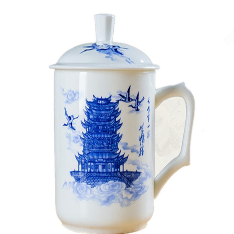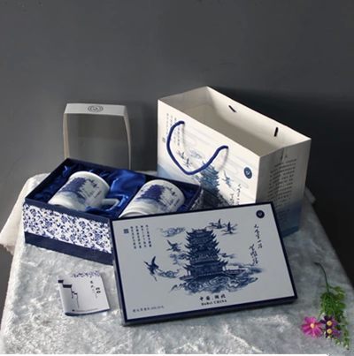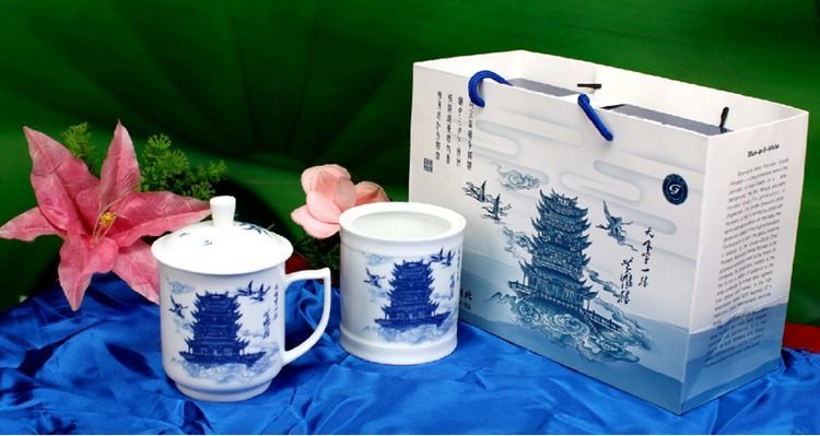 湖北特色创意礼品青花陶瓷杯青花瓷笔筒办公礼品套件会议商务礼t