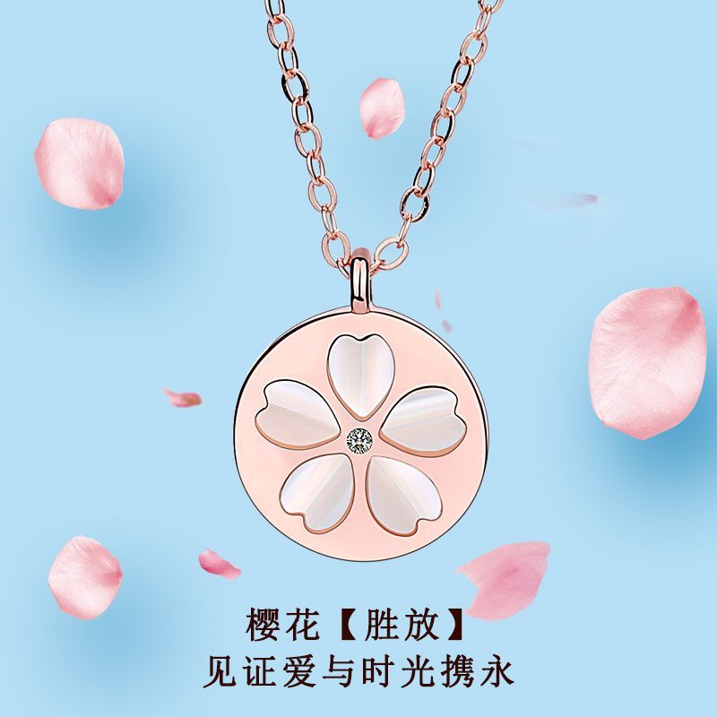 纪念武汉解封樱花项链女925纯银镀18K真金潮网红锁骨链送女友礼物